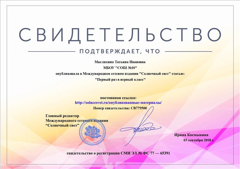Первый раз в первый класс