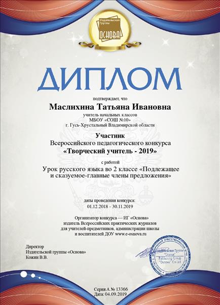Всероссийский педагогический конкурс "Творческий учитель 2019"