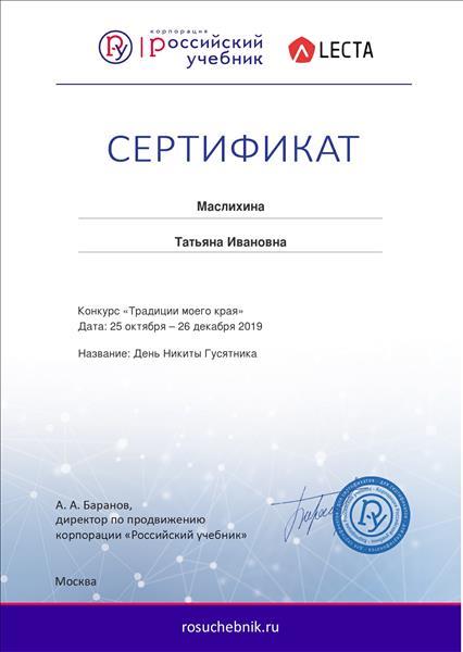 Маслихина Татьяна Ивановна